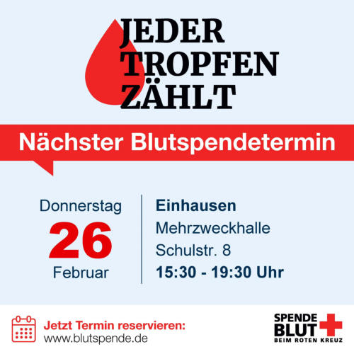 Donnerstag, 26. Februar 2026, 15:30 bis 19:30 Uhr, Mehrzweckhalle Einhausen